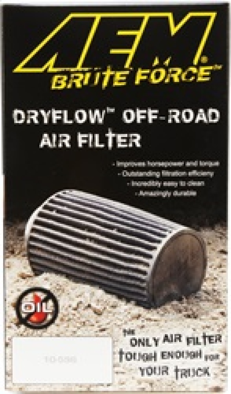 AEM Dryflow Universal Clamp-on Air Filters are washable synthetic air filters designed for a high-efficiency combination of air flow, filtration, and performance. AEM Dryflow filters use an innovative high performance oil-free filtration material that allows easy cleaning, durable service, and excellent filtration. This clamp-on universal air filter has a filter top for higher air flow capability making it great for everyday use.