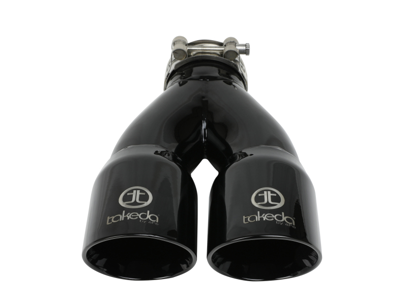 This direct-fit clamp-on tip is constructed from 304 stainless steel and features a black finish for corrosion resistance for long lasting good looks. This tip features a Takeda logo for an aggressive, custom look. A high quality stainless steel clamp is used for a complete 360 degree sealing surface.