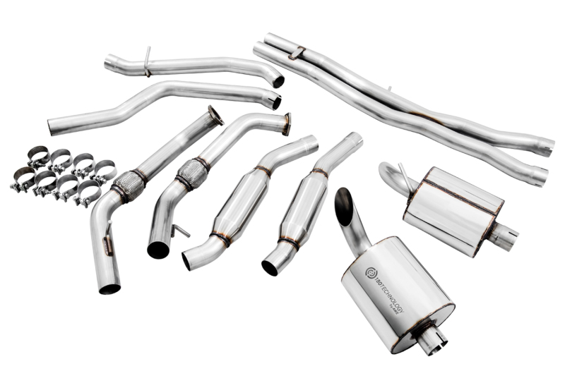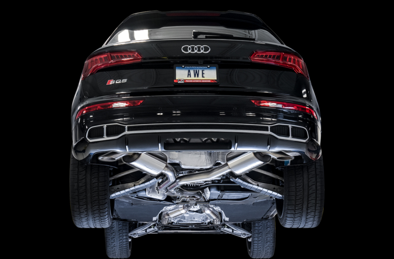 Sophistication for the SQ5. The Touring Edition Exhaust removes the factory valved exhaust and replaces it with AWE’s 180 Technology® drone-canceling resonators (and an electronic valve simulator). This solution provides for a perfect, signature AWE experience: civil within the cabin while cruising, yet all the pops and burbles during acceleration and downshifts. Thanks to the precision-engineered x-pipe specific for the SQ5, the Touring Edition Exhaust adds an exotic howl under throttle, perfect for Audi’s S-Line SUV.