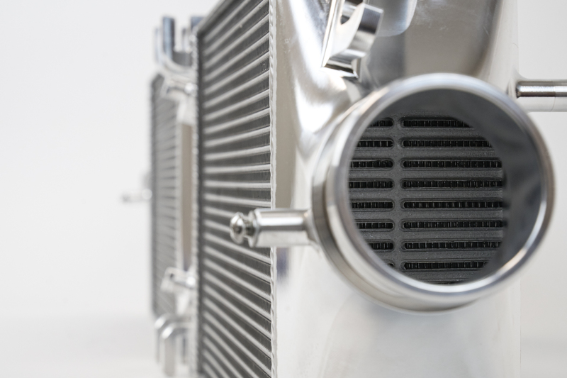 CSF designed and engineered the 992 Carrera intercooler to be a true Plug-and-Play "Drop-in Fit" unit. Utilizing all factory mounting points, the installation is straightforward and requires no modifications. The most important feature of the CSF by PWR 992 Carrera Intercooler System is the Formula-1 grade intercooler cores. CSF's strategic relationship with PWR has allowed the inclusion of these cores, which is unlike any other available in the performance aftermarket. These cores are the same style used in other CSF air-to-air systems previously developed for the 992 Turbo/S and 991 GT2RS with incredible results. The PWR cores eliminate heat soak and lower Intake Air Temperatures (IATs) much more efficiently than traditional Bar & Plate or Tube & Fin designs. The traditional intercooler cores that are typically much heavier and larger to improve cooling capacity. Because the PWR core is able to achieve greater performance results in a smaller size, CSF was able to design the intercooler system to fit in the stock location using all the OEM hardware, ducts, and shrouds for an easy drop if fit installation.