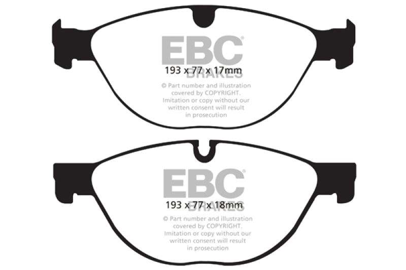 EBC Yellowstuff is an aramid fibre based brake compound with high brake effect form cold and is possibly one of the first ever compounds that can be used for STREET AND TRACK DRIVING. These pads do not require warm up but do get even stronger under the heat of hard driving. These are not a low dust pad and if your desire is for a low dust premium street use pad, you should consider EBC Redstuff.When considering full race use, Yellowstuff has been a strong favourite, having been used for two years in the Swedish Camaro Cup and at numerous other race events where a stock caliper system is fitted.It is also the choice of 90-percent of the Mazda MX5 Miata competitors in the UK race series and has an unblemished record as rotor friendly track pad for vehicles up to 2000 lbs weight or 200 BHP.In the USA the SCCA and NASA drivershave been testing Yellowstuff with feedback and good reports POURING in from a 543 test driver major market proving event with these groups. Read that figure again 543 test drivers.There is no guesswork here.