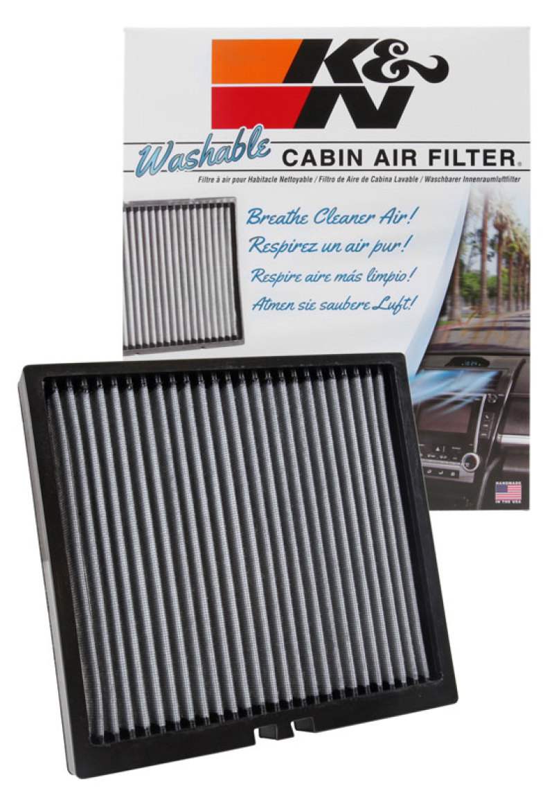 K&N washable cabin air filters are engineered to fit directly into your factory air box, offering excellent protection from environmental contaminants and odor-causing particles. The thermally bonded high-flow synthetic material acts as a physical barrier, helping trap dust, pollen, mold, bacteria, fungi, and other pollutants, and is specially pleated to increase the contaminant-capturing surface area. Each filter is engineered to install easily into your factory cabin air box, and is designed to be easily washed and reinstalled whenever necessary. Buy with confidence under the K&N 10-Year/Million Mile Limited Warranty.