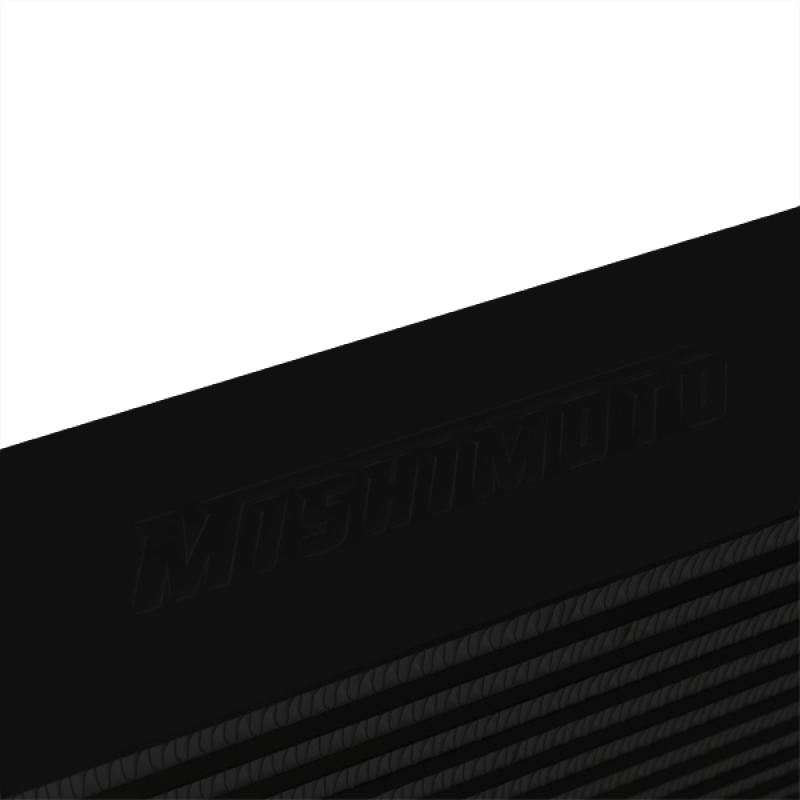 Sleek and stylish, this universal front-mount intercooler will provide the perfect cooling capacity needed for larger turbo applications.All Mishimoto intercoolers are constructed of 6061 aluminum and are TIG welded to perfection.Coated all-black finish gives this intercooler a sleeper look when mounted.Note: For your taste, only one side of the intercooler has the Mishimoto logo.