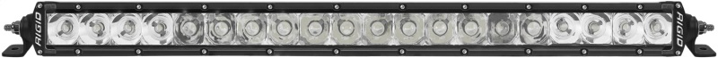 The SR-Series PRO LED Light Bars provide a sleek, low profile lighting solution that measures less than 2 in. tall. Thanks to improved LED technology, the SR-Series PRO now offers more light output than ever before with up to 111 percent more raw lumens. As the name implies, the SR-Series PRO utilizes a single row of LEDs with your choice of Hybrid or patented Specter optics in a variety of beam patterns. Ideal for applications where space is limited, the SR-Series PRO is a powerful light source designed to project light at extreme distances while consuming very little power. Available in a wide range of lengths and optics, these LED light bars can be used on virtually any application, whether it's an off-road vehicle, industrial, agricultural, or marine. RIGIDs SR-Series PRO lights utilize extruded aluminum housings and are available with either a black or white durable powder coated finish. Along with improved LEDs for more output, the SR-Series PRO benefits from prominent branding and blacked-out circuit boards for a more refined look. They feature the same superior build quality as the rest of RIGIDs lighting products, providing reliable and efficient lighting on demand. Own The Night with RIGIDs single row LED light bar.